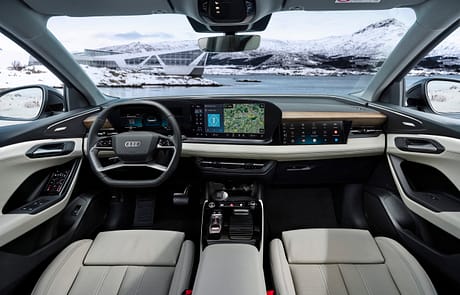 Im Innenraum des Audi Q6 e-tron erwartet die Insassen ein futuristisches und komfortables Ambiente. Das Audi MMI Panoramadisplay und das MMI Beifahrerdisplay halten die Insassen der vorderen Reihen immer up-to-date während hochwertige Materialien und ein intelligentes Raumkonzept für ein luxuriöses Fahrerlebnis sorgen. Ebenfalls wird das Augmented Reality Head-up-Display wie auch ein Sprachassistent der auf das Aktivierungswort „Hey Audi“ hört, Verwendung finden. Die neue Elektronikarchitektur E³ 1.2 ermöglicht eine nahtlose Integration von Fahrzeugfunktionen und eine hochperformante Vernetzung.