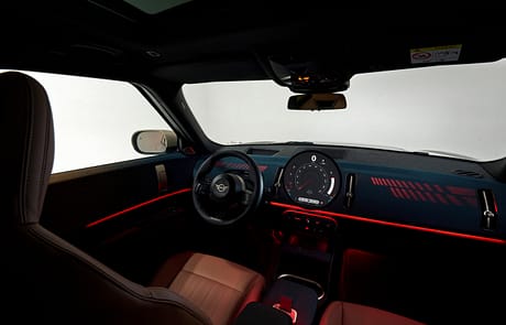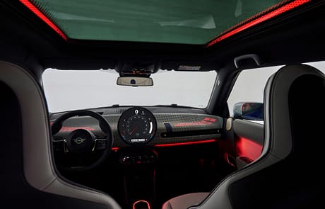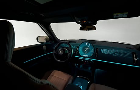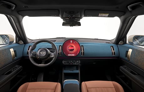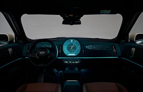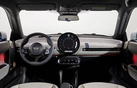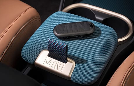Das neu gestaltete Armaturenbrett besteht jetzt aus textilen Oberflächen. Hierfür wurde ein spezielles Stickverfahren entwickelt, das pflegeleicht und zweifarbig designte Textilien erzeugt. Das Ambientelicht in Verbindung mit dem optionalen Panoramaglasdach lässt die recycelten Textilien in natürlichem Licht noch besser zur Geltung kommen. Natürlich gibt es im MINI auch die Vorklimatisierung via App und Planung im Infotainment, ebenso wie eine ladesäulenbasierte Navigation.