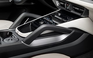 Damit der Fahrerfokus nicht verloren geht, sind alle für das Fahrerlebnis wichtigen Element um das Lenkrad gelegt: Der „Start-Schalter“ befindet sich wie das gute alte Zündschloss weiterhin links vom Lenkrad und der Gangwahlhebel hat seinen Platz zwischen digitalem Kombiinstrument und Zentraldisplay gefunden. Auch finden die Fahrerassistenzsysteme wie auch der Fahrmodusschalter des Porsches direkt Platz am Lenkrad, um einen schnellen Zugriff des Fahrers zu ermöglichen.